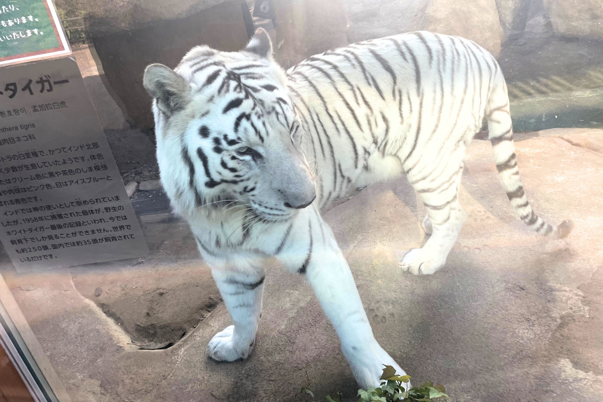 そこでまず目に入るのは、悠々と歩く大きなホワイトタイガー。凛々しいお顔に惹き込まれていると何やら頭上からのしのしと足音が...。