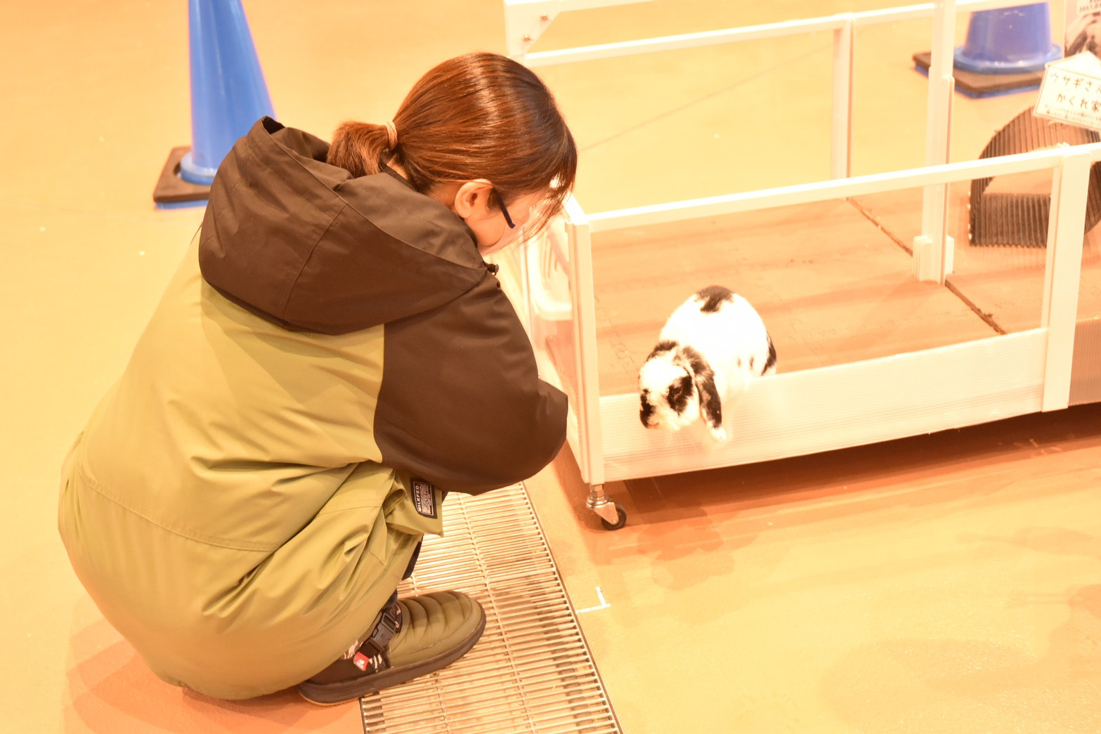 「ふれあいひろば」では、ウサギやモルモットなどの小動物を間近で観察できます。