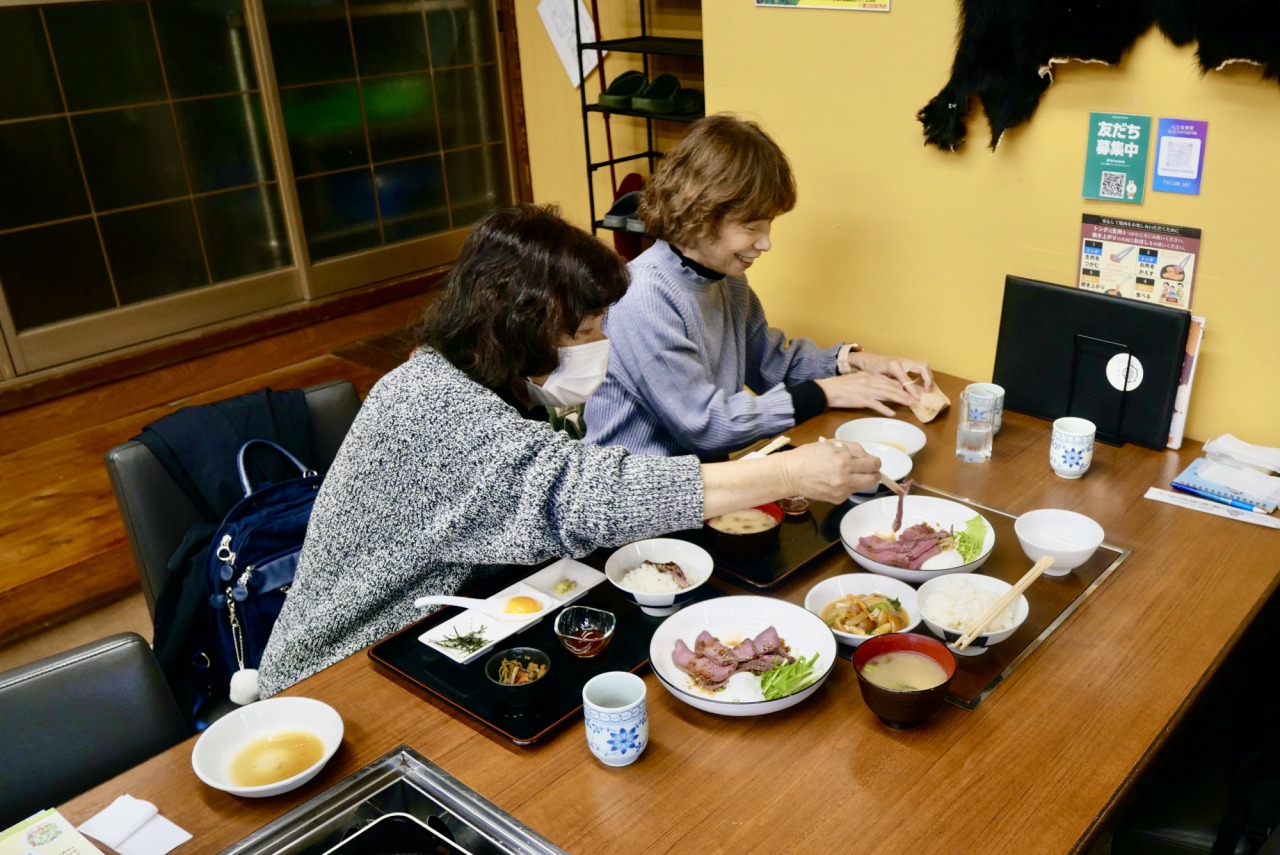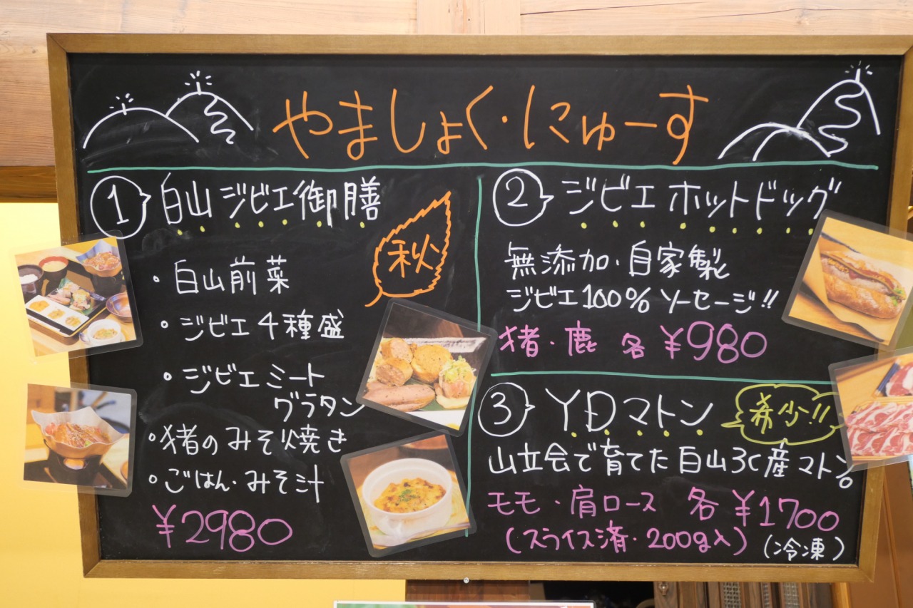こちらの食堂では里山で害獣対象となった猪や鹿などのジビエ料理も堪能できます。ジビエのソーセージ、ピザ、ホットドック、丼物、定食などメニューも豊富です。今回はジビエの定食をチョイス。肉の部位を選ぶことができ、年配には優しい柔らかい部位をお願いしました。今回はなめこ収穫体験でのセットプランでしたが、羊と触れ合うプランもあります。ぜひ『山立会食堂』へ足を運んでみてもらいたいです。私はリピーターになりそうです!!