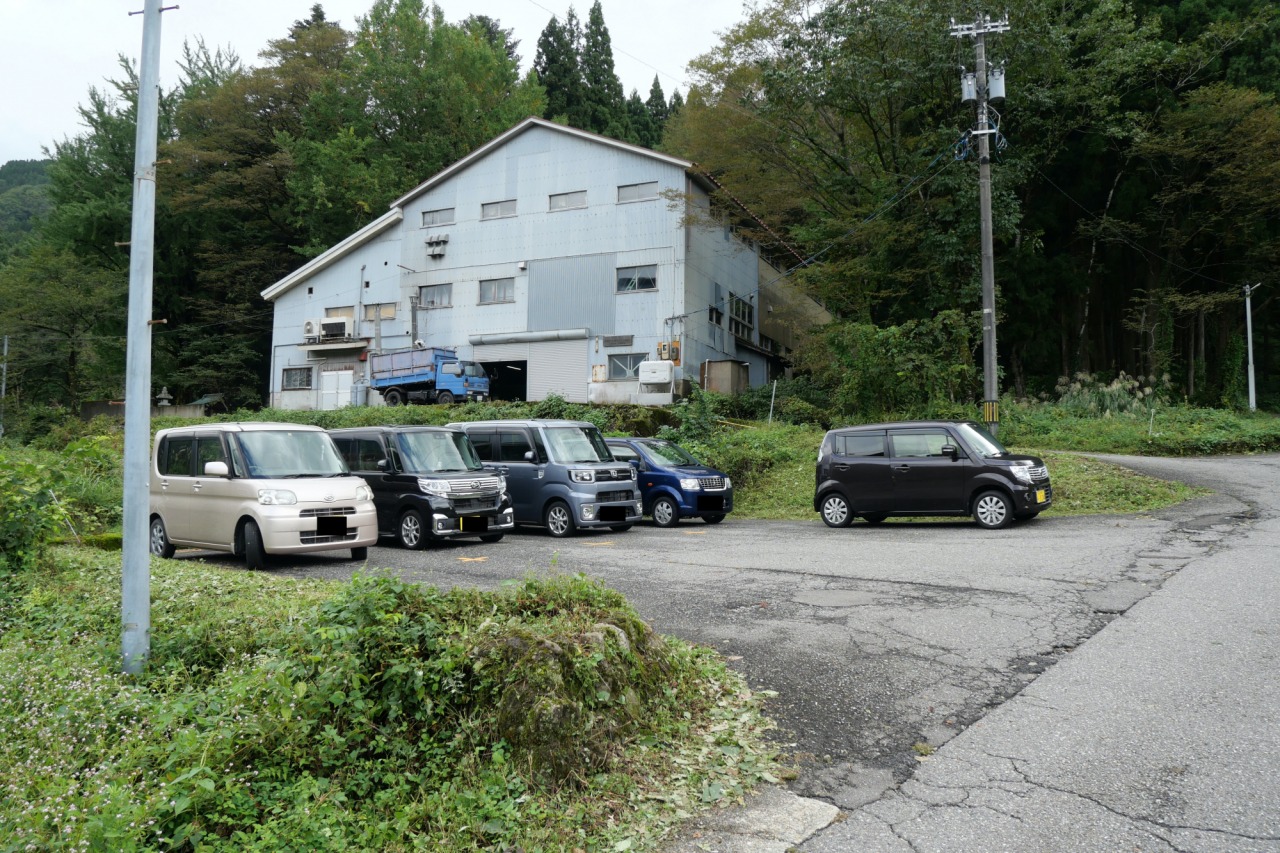 木滑なめこは昭和47年からこの工場で生産されています。そのため、建物も結構古いです。一見『なめこ工場の見学はどこかな?』と思わせる外観なので、この記事を参考にしてくださいね。また、駐車場は工場の従業員の方の車の前のため、出来るだけ前方に寄せて停めておいた方が良いと感じました。