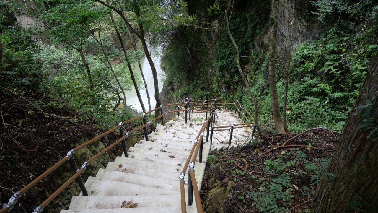 階段は約120段ほどあり、しかも急です。手すりも2段あって何故かと不思議に思ったのですが、下りる用と登る用で使い分けが出来る優しい気遣い。ただ、40代の私でも次の日、太ももパンパンになりました…。