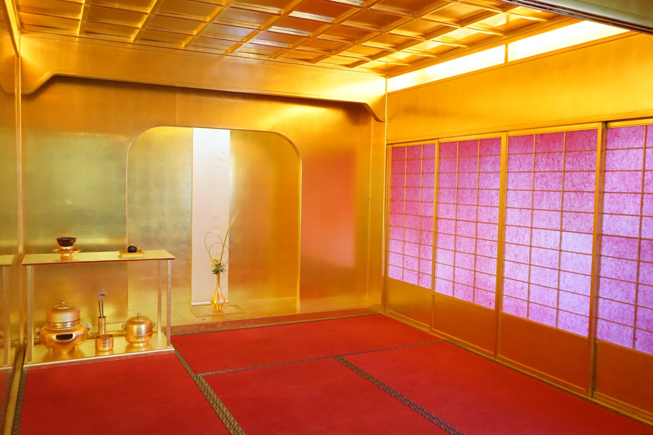 大きな見どころの1つが、約4万枚の縁付金箔を使い仕上げられた「黄金の茶室」。