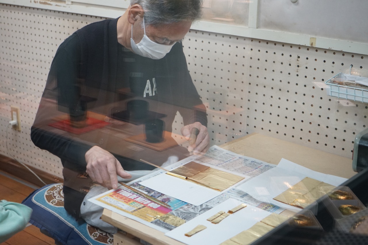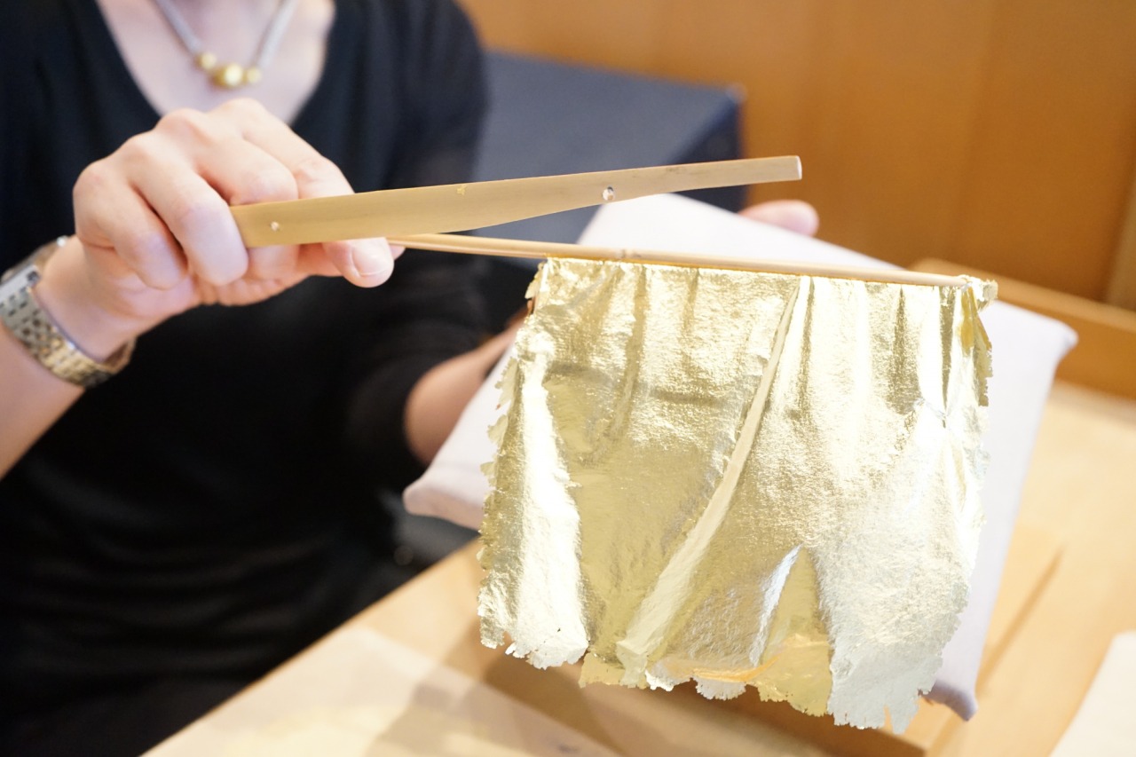 吐く息でふわっと飛んでしまうので、慎重に行わなくてはいけない繊細な作業。こんなに間近で見たのは初めてで、本当に薄く薄~くのばされているのがよくわかりました。