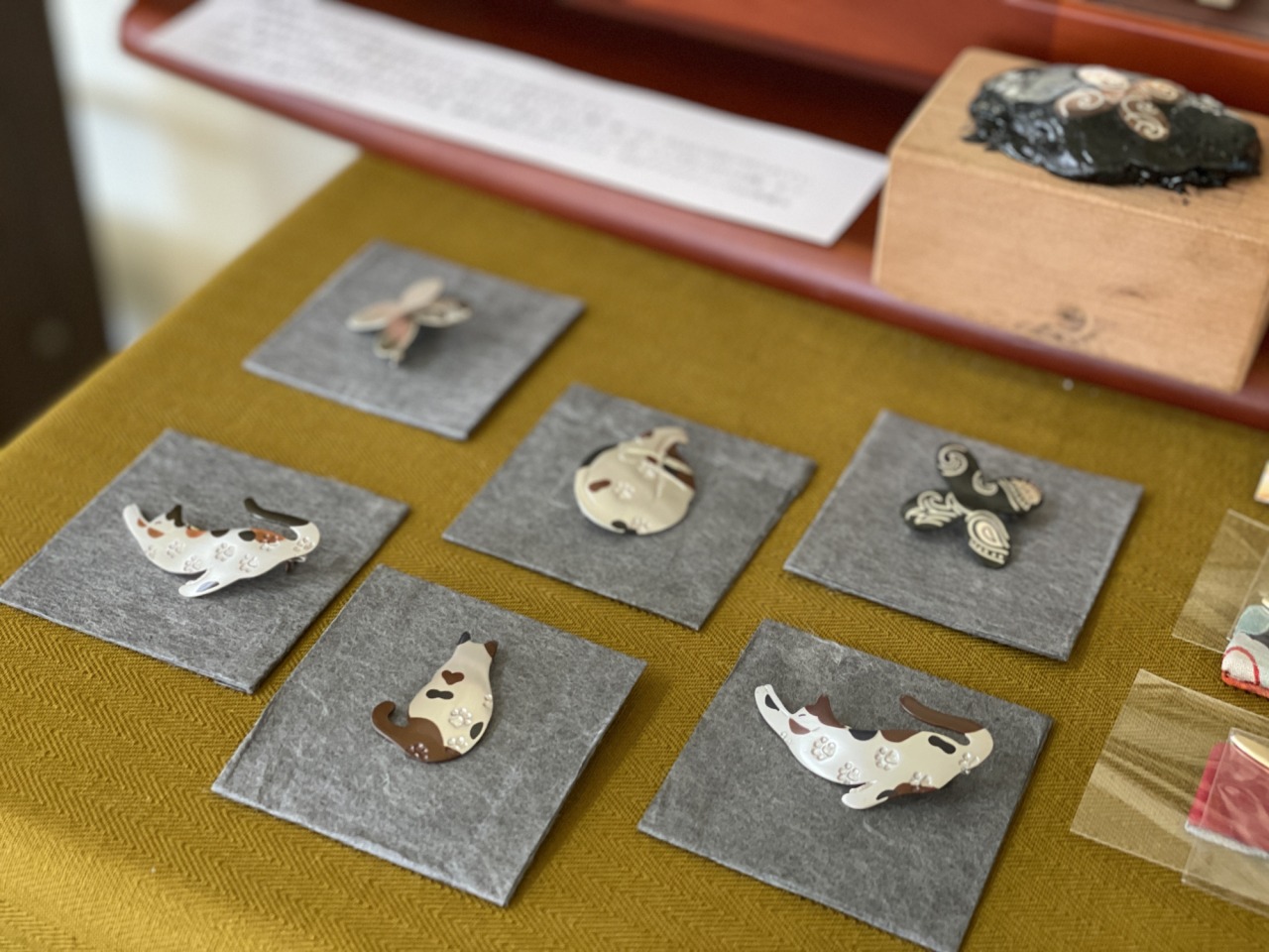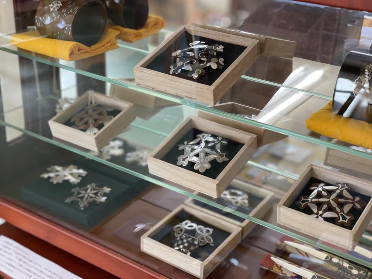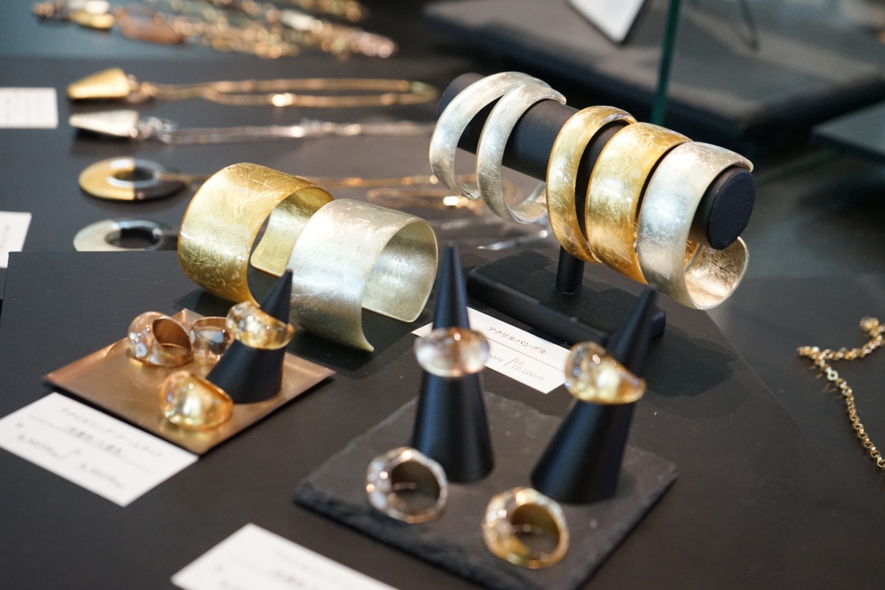 展示棚には、加賀象嵌のアクセサリーなども並べられていて、その上品な輝きとデザインに目を奪われました。