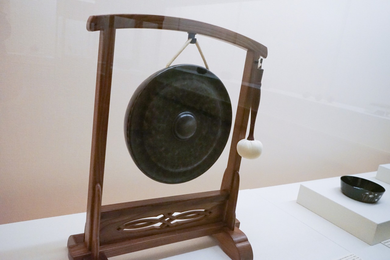 茶席の準備ができたことを知らせるために鳴らされ、銅と錫の合金の砂張(さはり)という独特の素材で作られており、叩くと余韻を残すえもいわれぬ音色が響くのだそう。