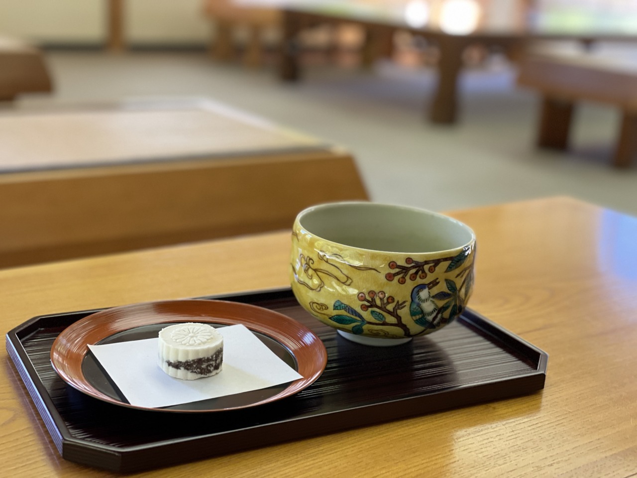 名品を鑑賞した後はちょっと一息。『中村記念美術館』には喫茶室があり、気軽にお抹茶と和菓子を味わうことができるんです。