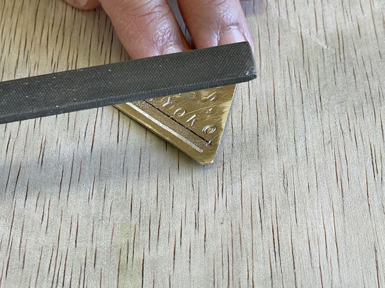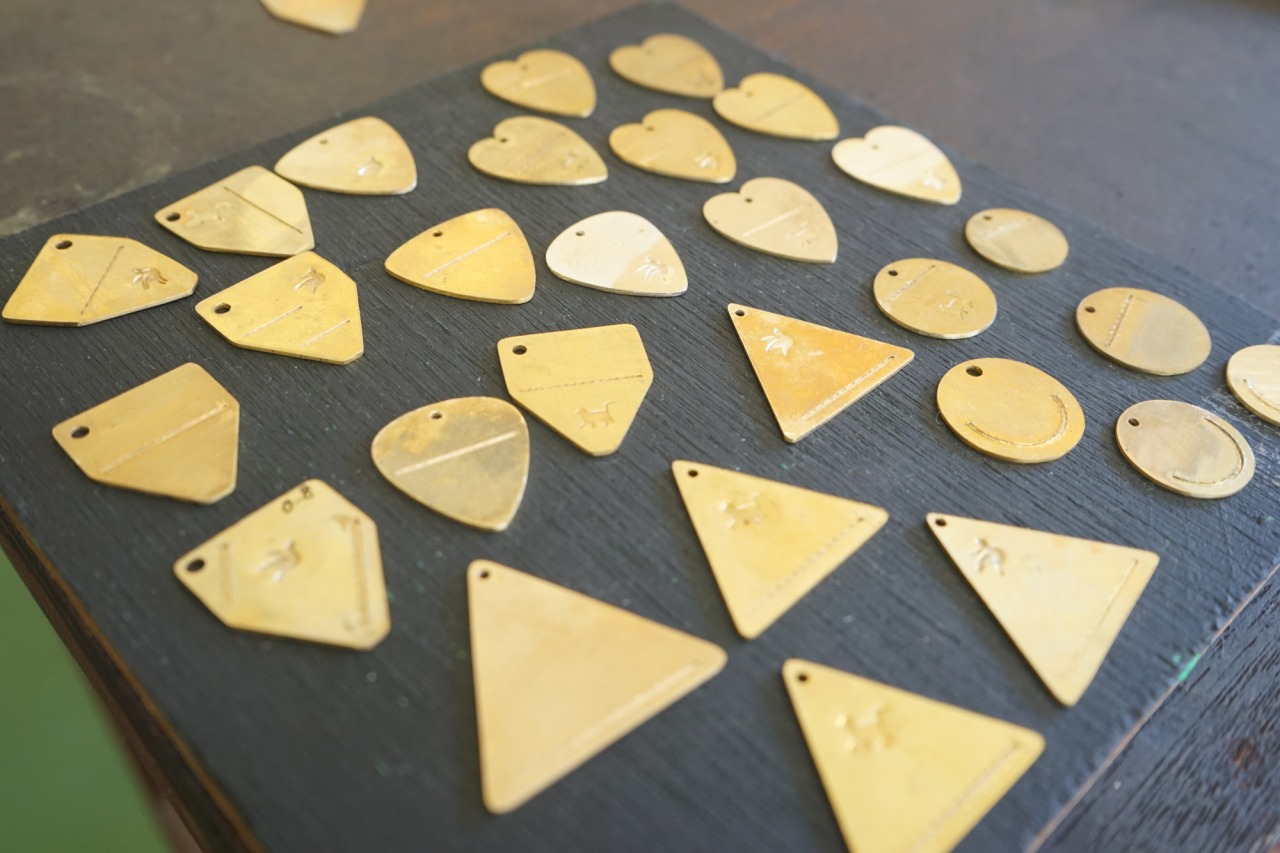 まずは、ベースとなる真鍮の板を選びます。色々な形があるので、用途や好みに合わせてセレクト。わたしはキーホルダーにしたくて三角形のものを選びました。