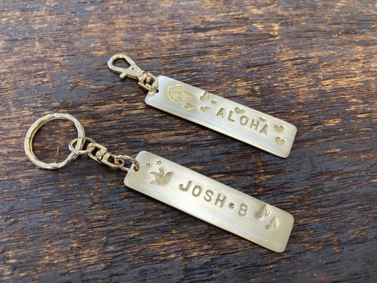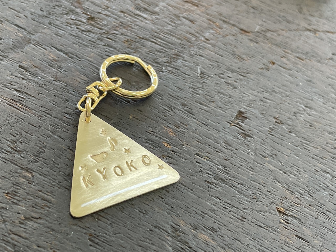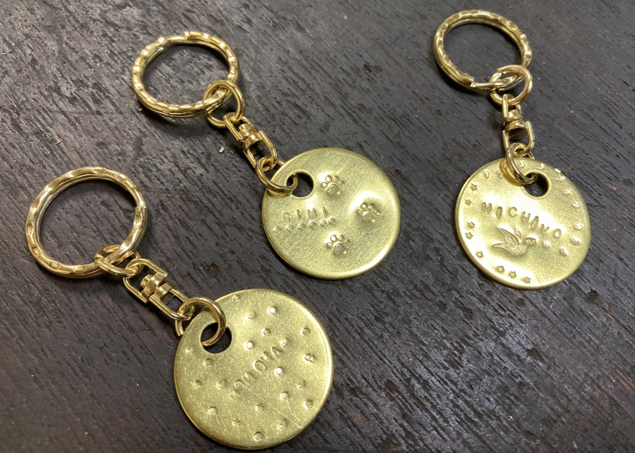 キーホルダー用の金具をつけてできあがり!わたしは自分の名前と、コーヒーが大好きなのでコーヒーカップの刻印を入れました。まわりには星や音符の刻印も。