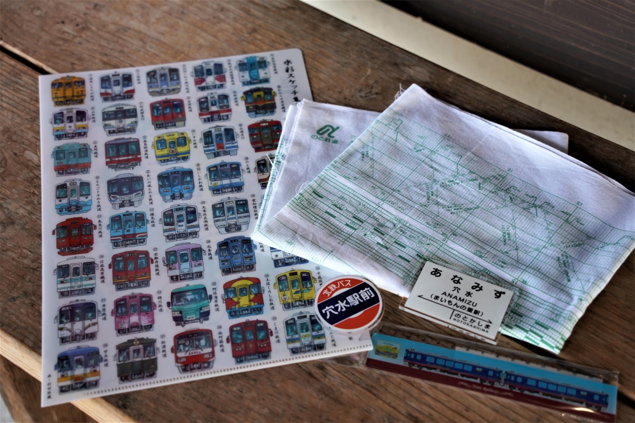次の人気はのと鉄道グッズ。七尾駅(七尾駅~和倉温泉駅間はJRと供用)と穴水駅を結ぶ鉄道路線ですが、所有はJR西日本のため、のと鉄道は自社で線路を持たない鉄道運営会社です。海沿いや山あいを走る列車の車窓からは、ローカル感満載の沿線景色を楽しめます。三セク鉄道クリアファイル(400円)、観光列車オリジナル定規(300円)、駅名標マグネット(550円)、バス停留所マグネット(600円)、ダイヤグラムの手ぬぐい(1,100円)などが好評だそうです。