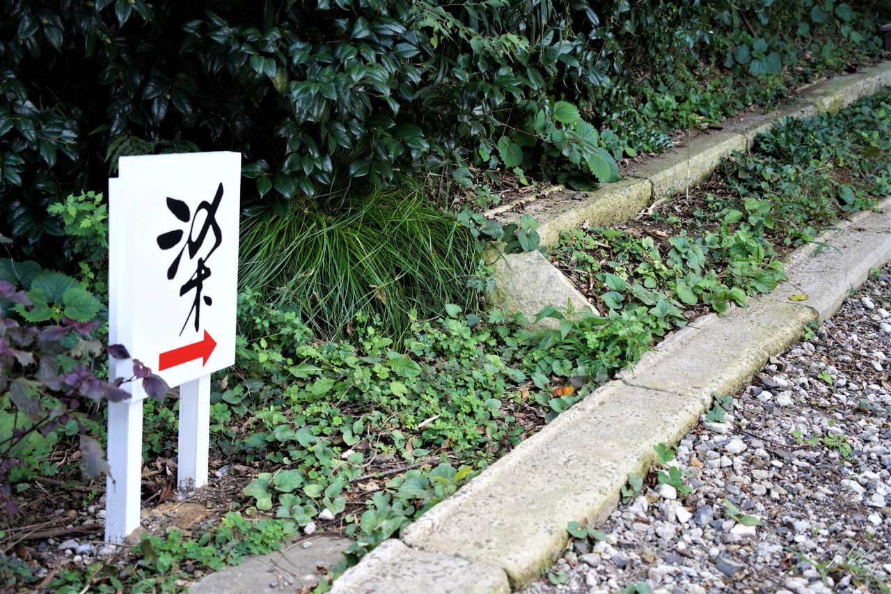 明泉寺からは富山湾に向かって進みます。富山湾にぶつかったら右折し、約200m右手のゆるい坂を上ると『新谷工芸』があります。こちらも少々分かりにくいのですが、この「染」と書かれた看板が目印。見のがさないで。
