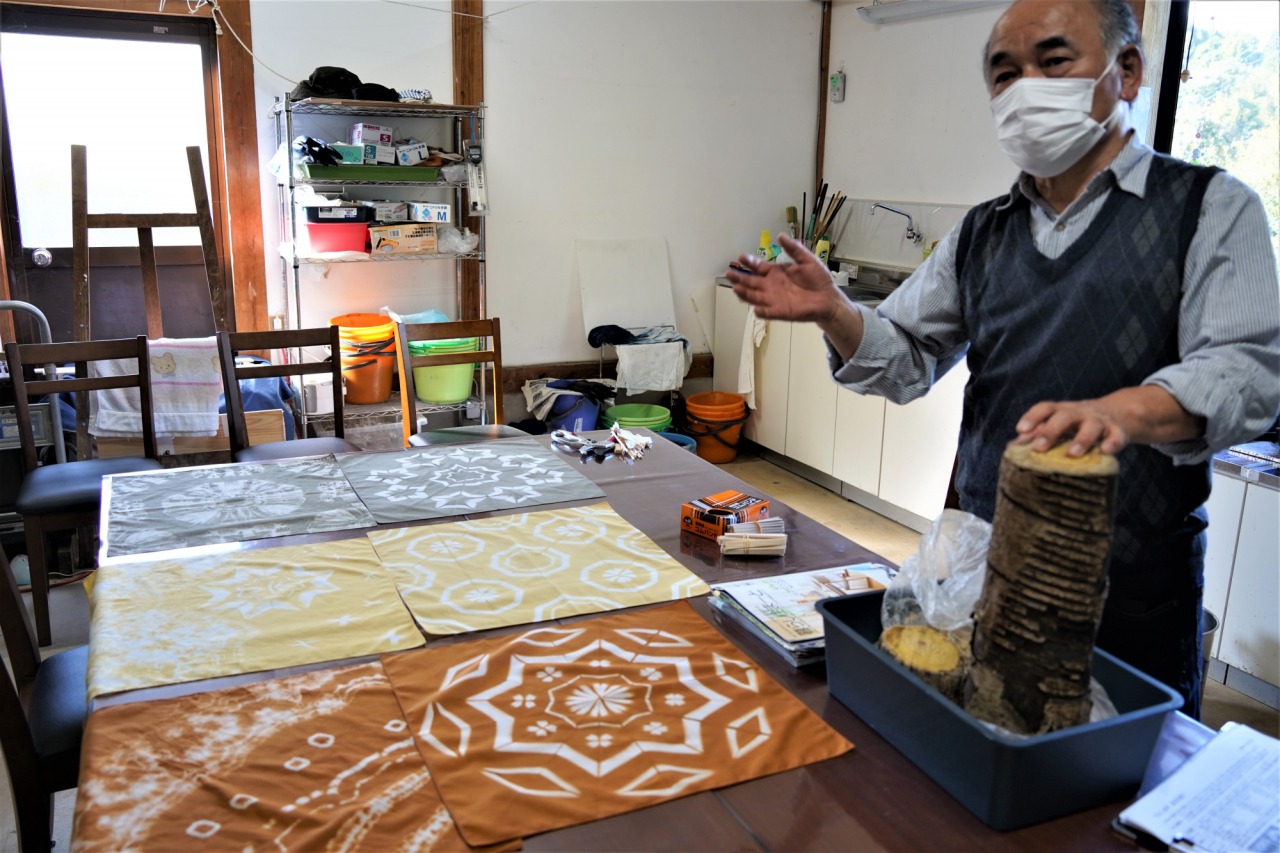 そんな穴水の豊富な食材や自然を気に入って移り住む移住者も増え、今回のウルシ染めの体験はUターンされた友禅作家さんが教えてくれます。