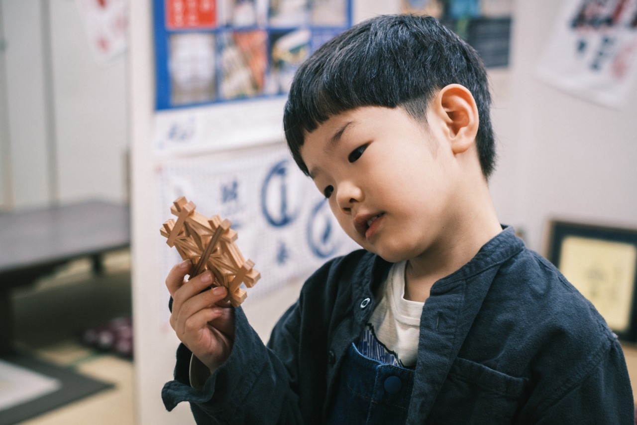 組子なので、本当に木を組むだけ!とはいえ、うちの長男にできるか…と内心では不安でしたが(手先の技術というよりも集中力の問題で)、空気を読んだのか、意外にもすぐさま真剣な表情に。