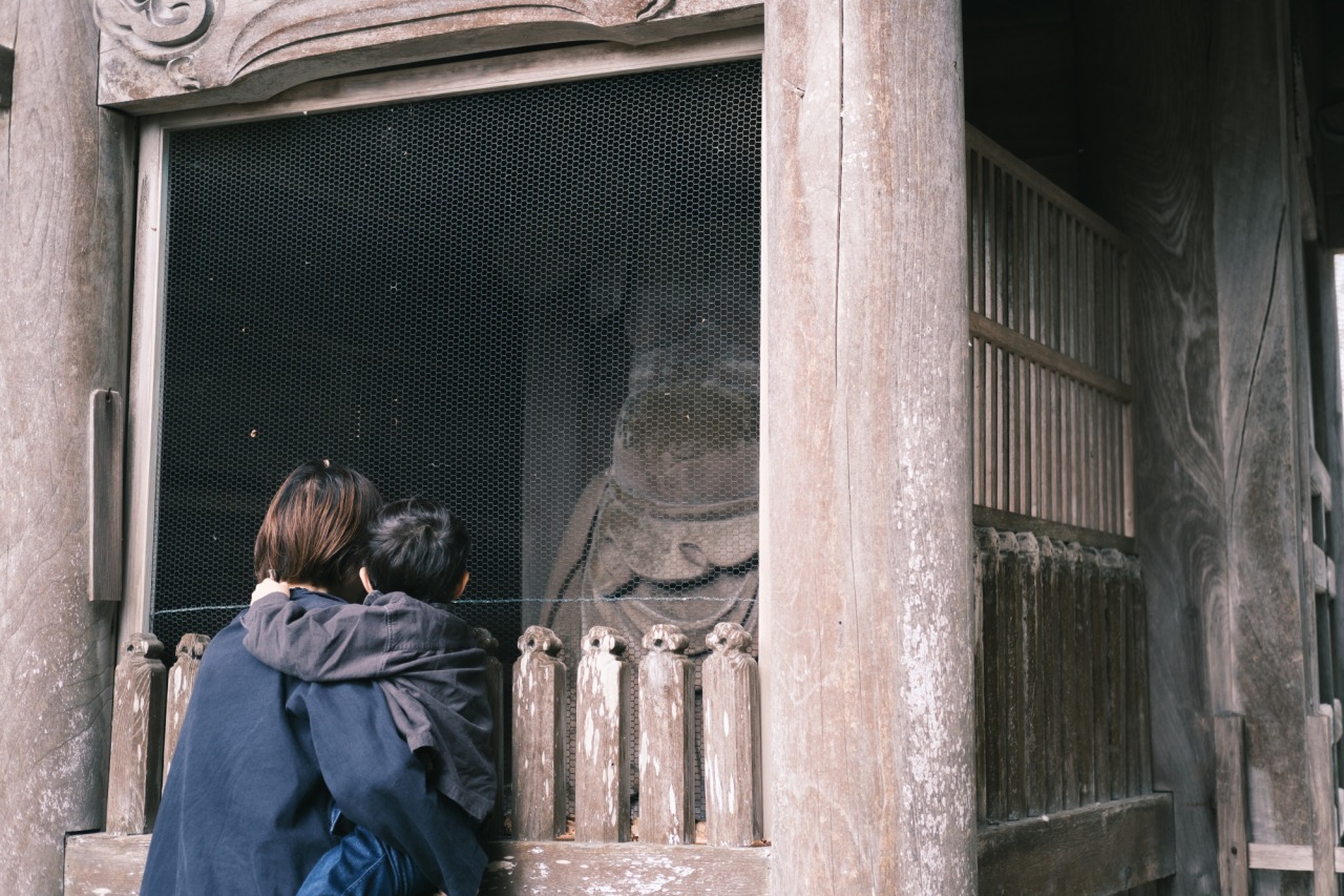 山門には立派な仁王像が。ついつい覗きたくなりますよね。寺社仏閣に明るくない方のために付言しますと、そもそもこんな立派な山門がある自体がすごいんです。東嶺寺全体がほとんど建立当初の姿のままで、本堂や山門は市指定文化財に登録されています。指定文化財は本殿内にもたくさんあるそうですよ。
