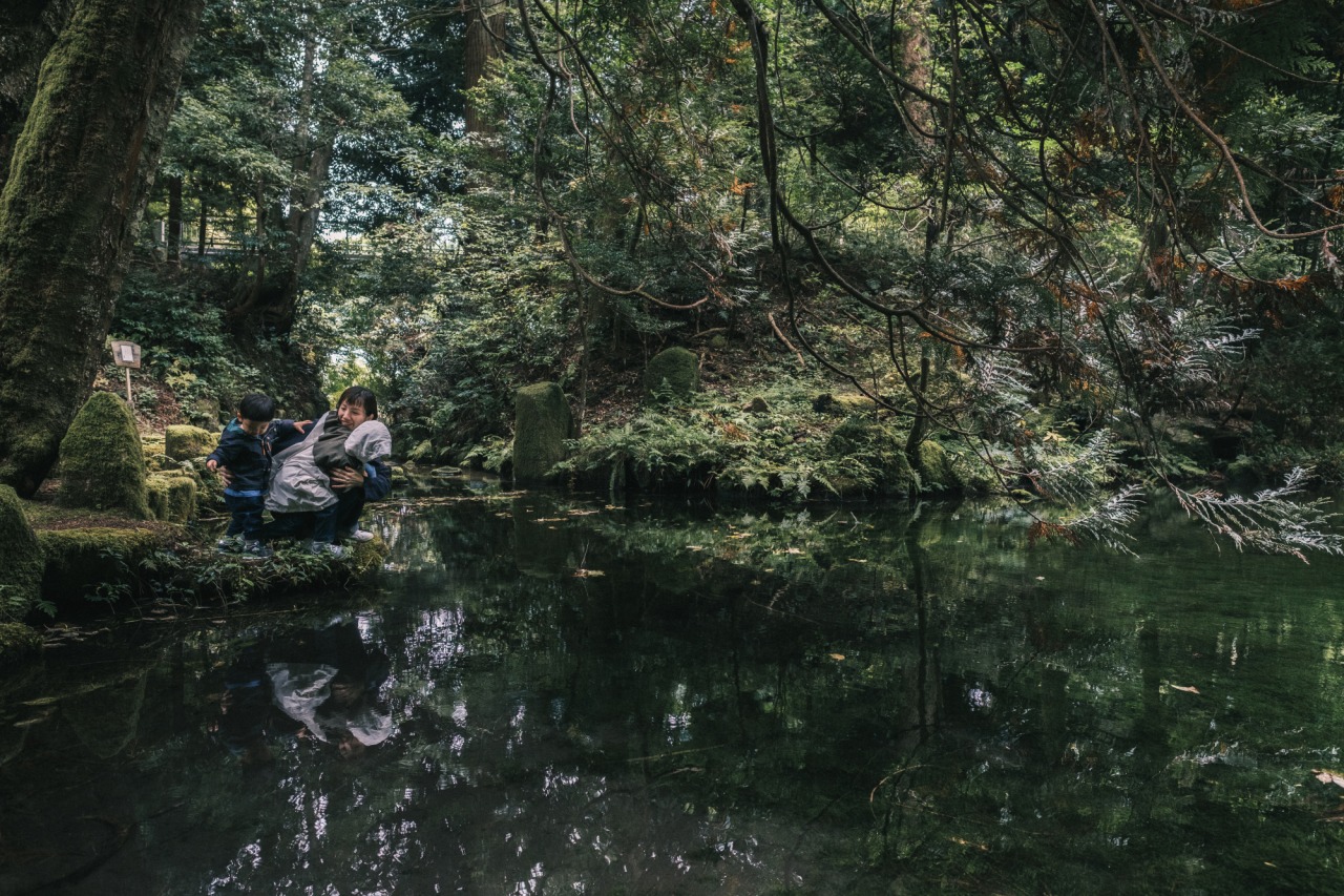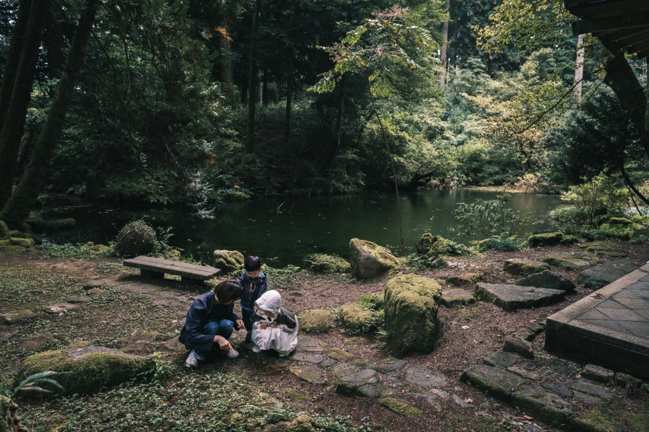 苔やら虫やらに夢中の息子たち。こんなにキレイなのになぜか観光客は僕らだけ。穴場中の穴場です。貸し切り状態なので、池のほとりでたくさん写真を撮ってしまいました。