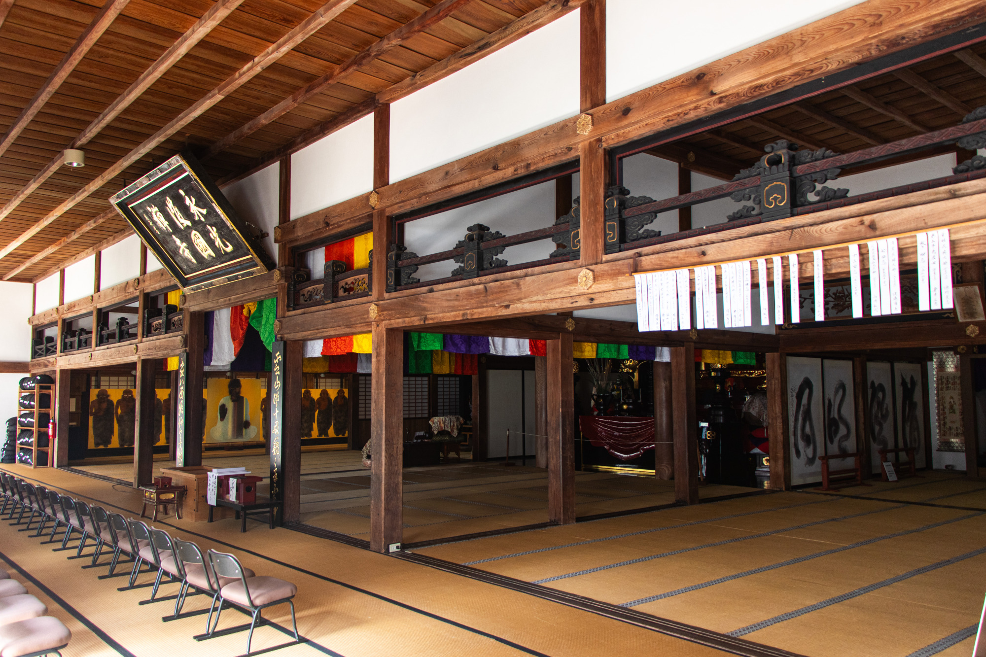 1,909年(明治42年)、後の大正天皇(東宮殿下)が和倉行啓の際に休憩所として建てられた御便殿が青林寺に移築され、国指定登録有形文化財となっています。屋根には洋風のトラス構造を用いて空間を生かし、内部は格式高い折上げ格天井が施され、庭と客殿が一体になって見事な景観を創り上げています。本堂で「坐禅」や「写経」も体験することができるのも魅力的です。 また、近くの信行寺には随行員の控室であった供奉殿が移築され、信行寺書院として遺されています。和倉へ訪れた際は、2つのお寺をはしごすることをおすすめします。