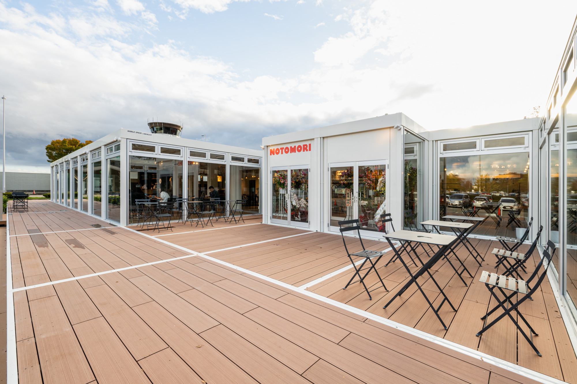 県が空港敷地内に仮設飲食店<NOTOMORI>を整備し、被災した仮設飲食店が入居しています