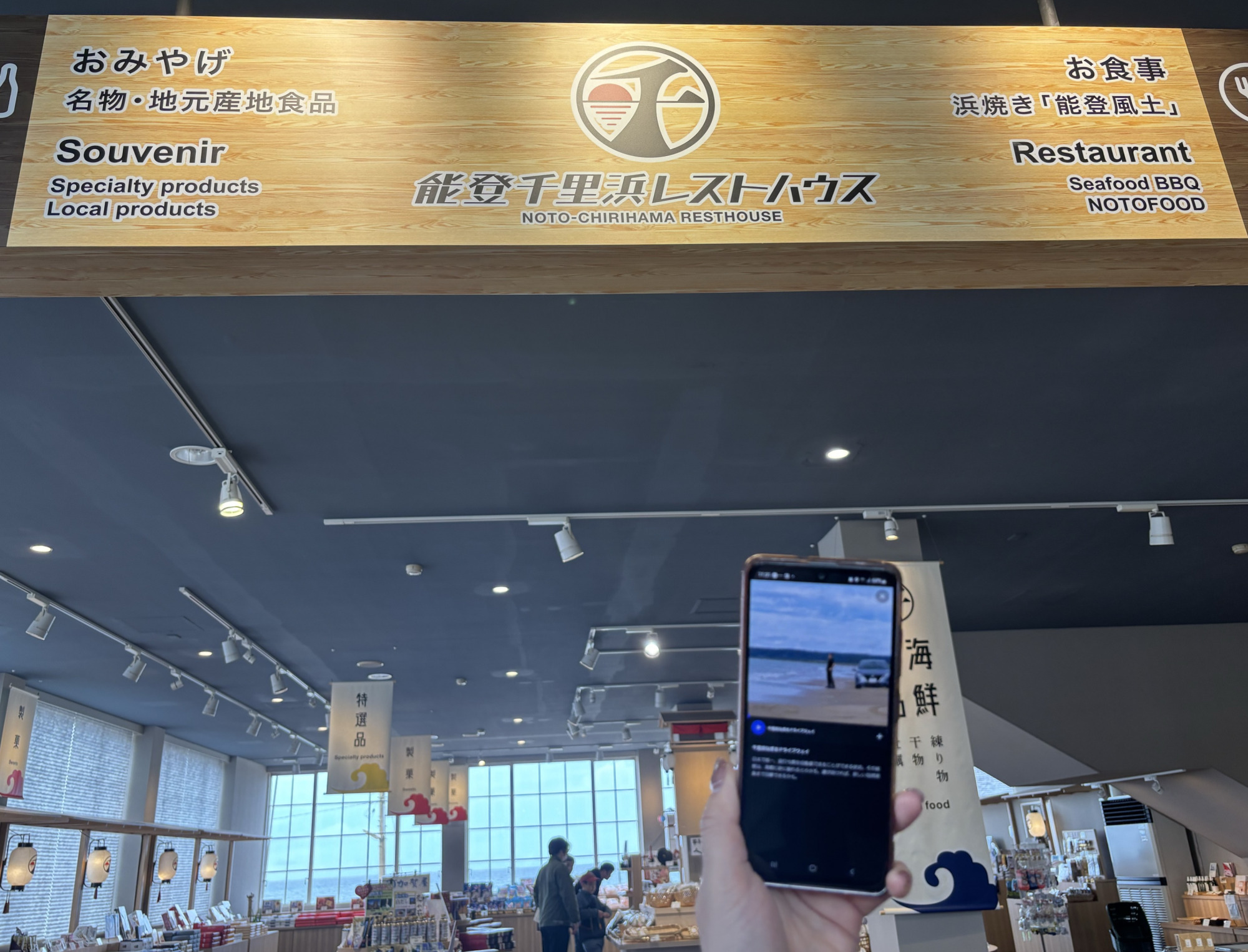 ドライブウェイの終点にある千里浜レストハウスでは、日本海を一望できる景色や、食事や買い物も楽しめますよ。
