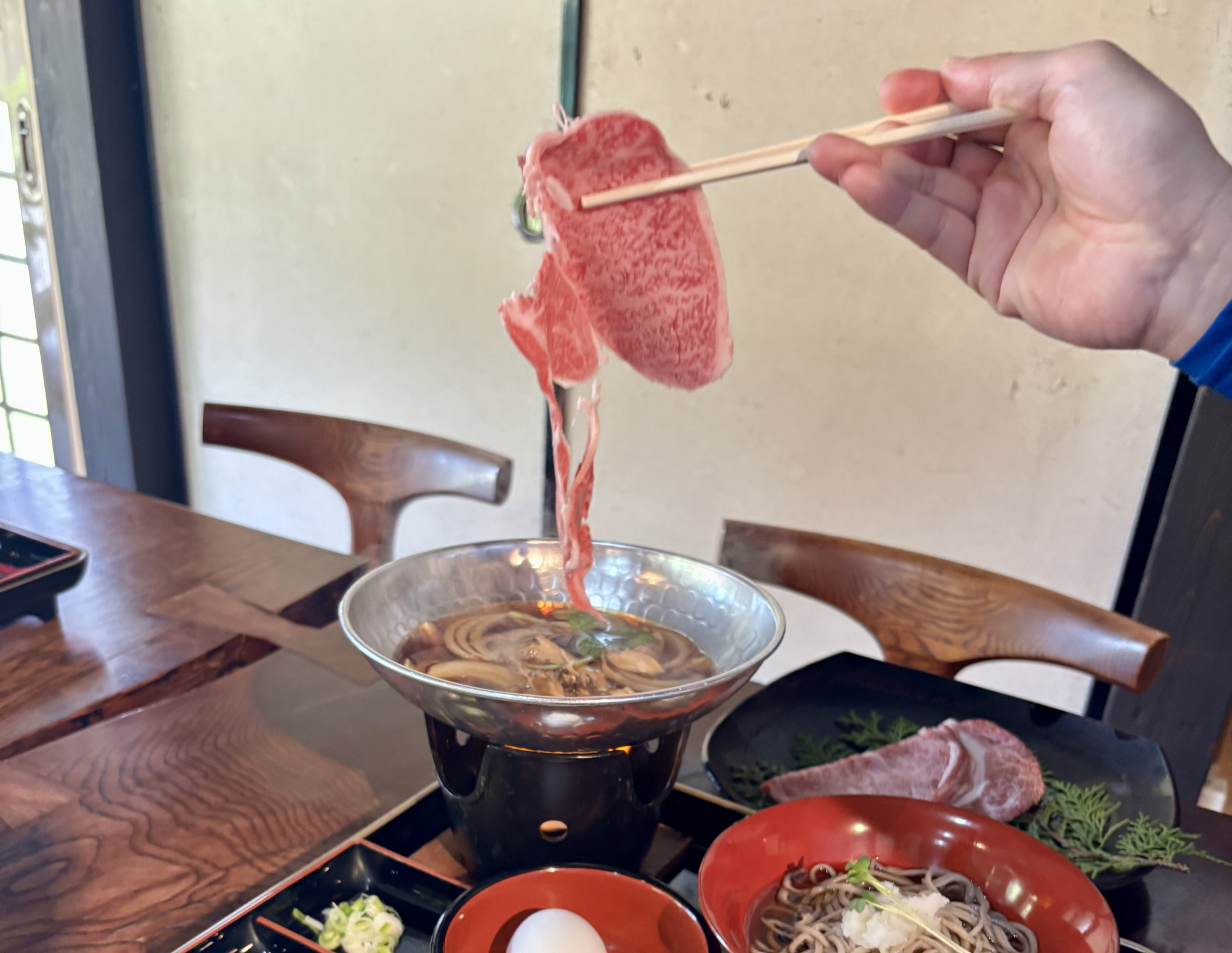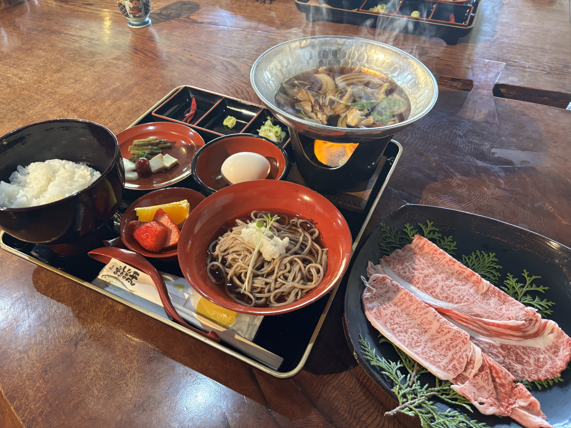厳選された能登牛のA3~A5ランクを好みの煮加減で贅沢に楽しめます。夢一輪館さん自慢のお蕎麦や小鉢も一緒に味わえるのも嬉しい、大満足のメニューです!