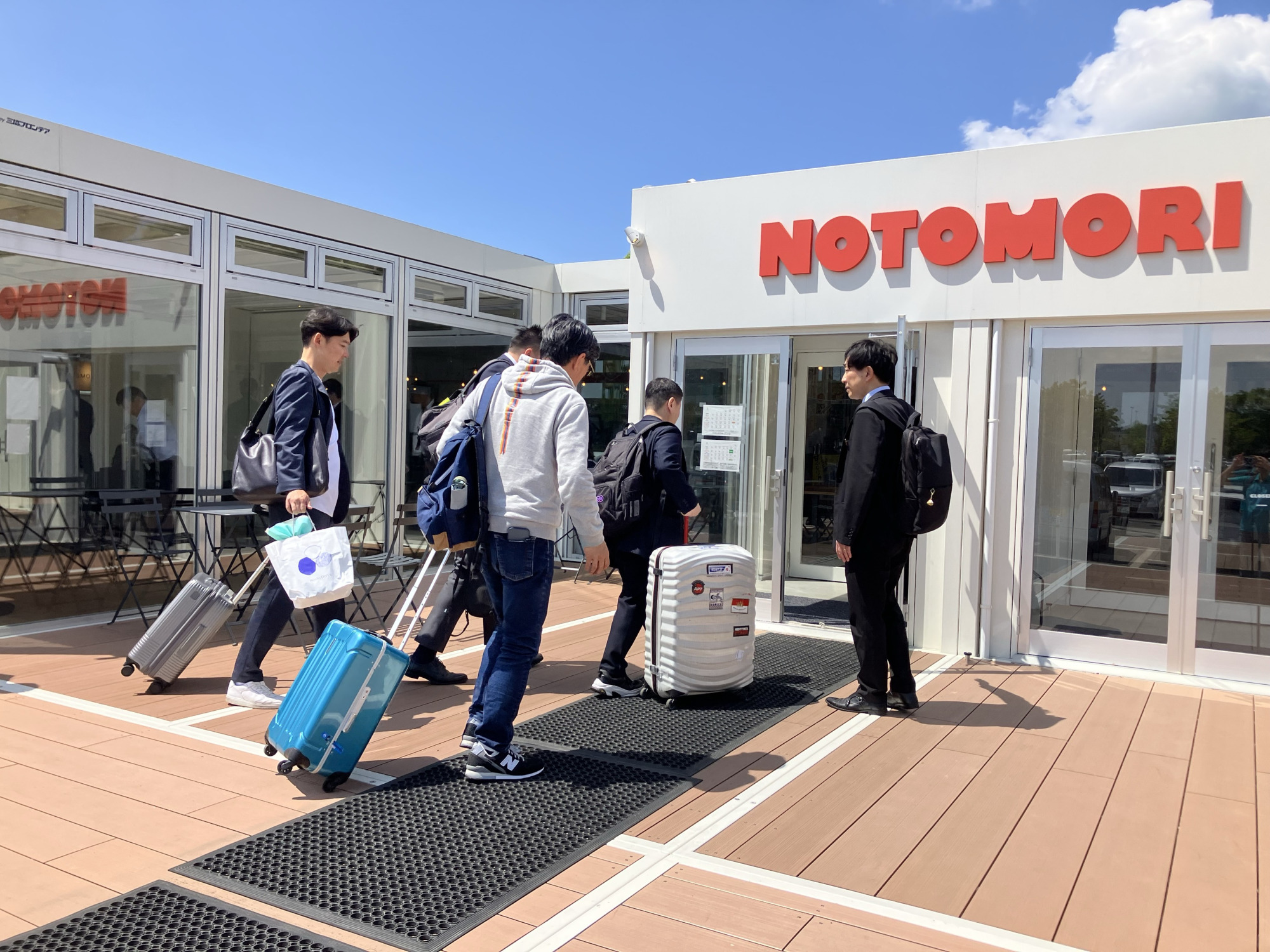 到着口では奥能登総合事務所の県職員が迎えてくれました。県職員の誘導で駐車場敷地にあるNOTOMORIまで移動します。