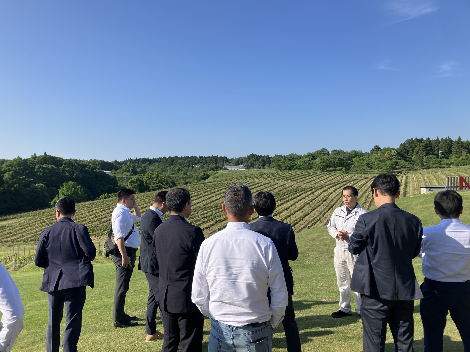 地元で育てた能登産ブドウを原料にして年間12万本のワインを製造しているワイナリーで、ワイナリーの目の前の里山に広がるブドウ畑は最高のロケーションです。実はこれでも全体の8分の1だと言うから驚きです。