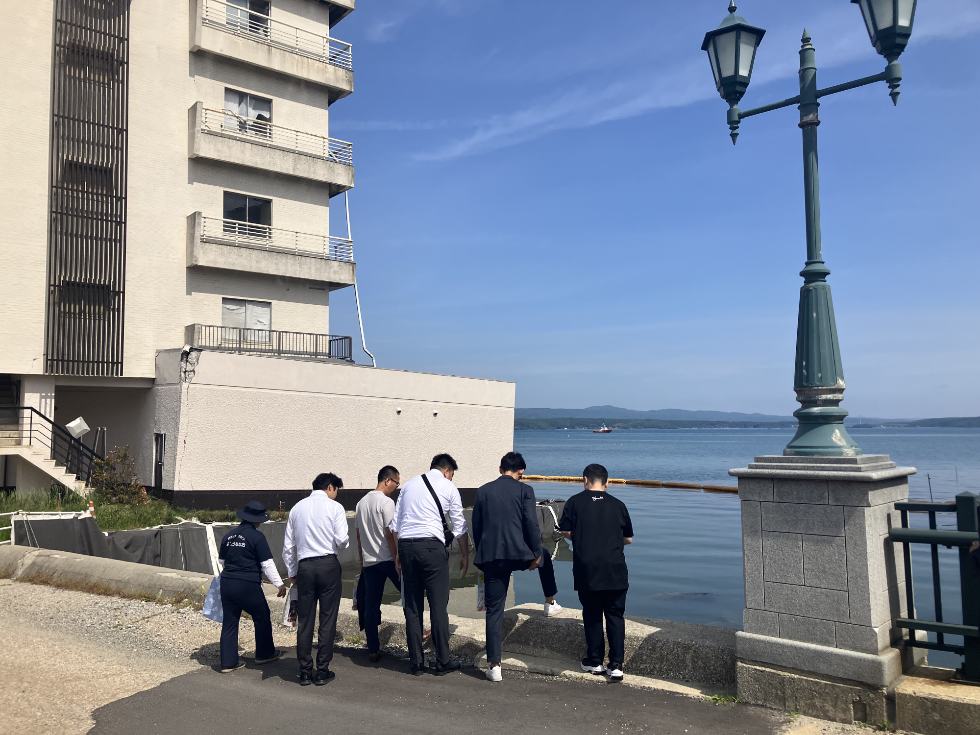 総湯から街を歩くと、和倉温泉が海のそばにあることや建物がとても大きいことを感じ、復旧工事が難しいことがわかります。一方で解体中の旅館や解体後の更地だけでなく新築の家屋も見られるようになってきており、復興が進んでいることも実感できました。