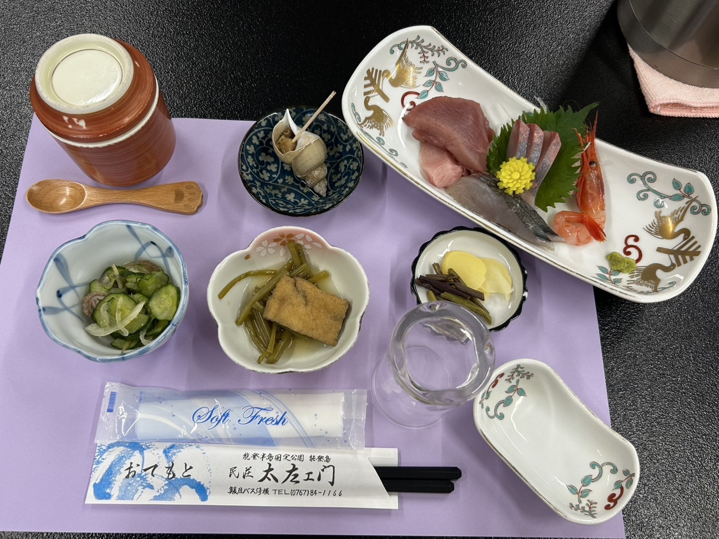 太左エ門さんは能登島で漁師民宿をしていましたが、地震で店舗が壊れてしまい、毎日市内まで通って飲食店を営業しています。元々漁師民宿なのでお魚の鮮度は抜群、料金はリーズナブルです。おいしいお魚でビールもご飯もどんどん進みます。