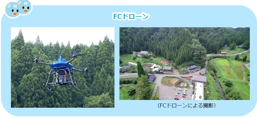 水素から電気を作って、その電気で車やドローンを動かして使うんだ。