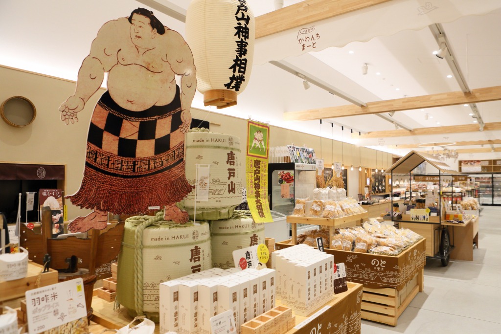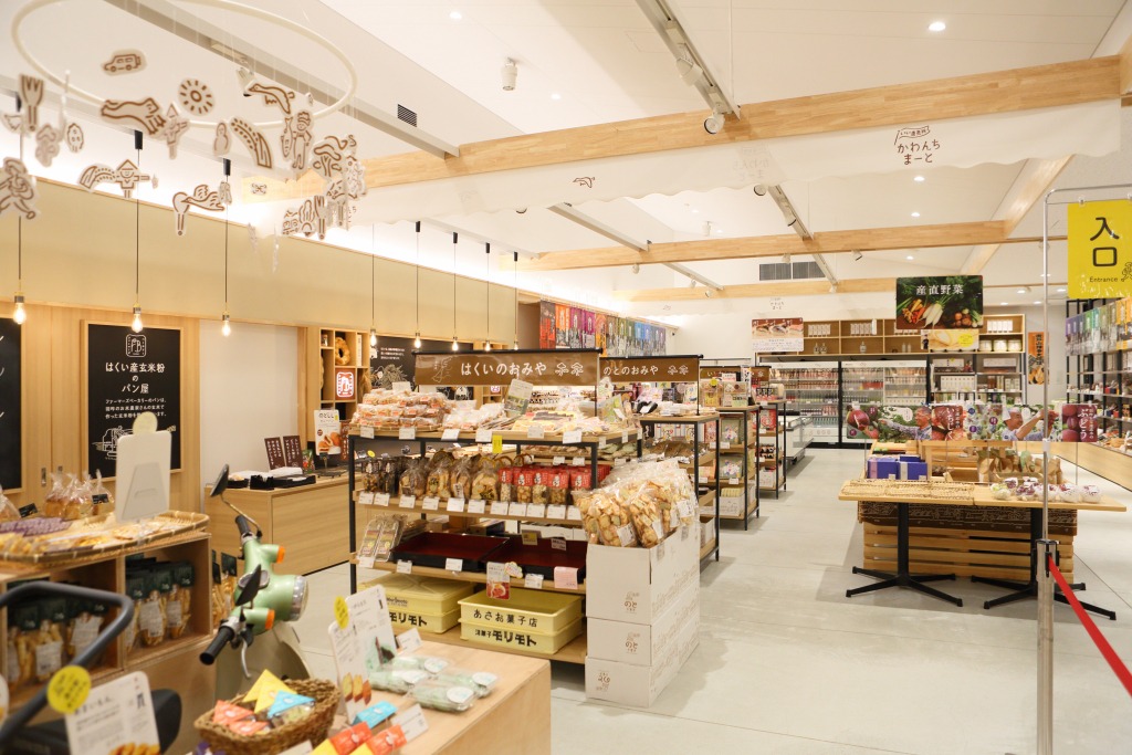 直売所(かわんちまーと)には自然の持つ力を最大限に引き出して作物を育てる自然栽培で育てられた野菜や米、加工品などここでしか買えない羽咋みやげが数多く集まっています。