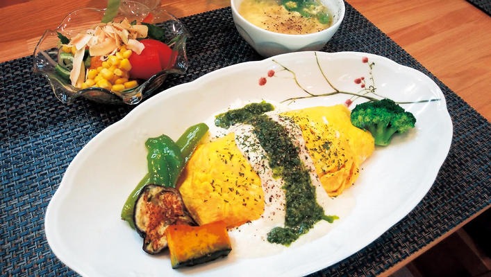 静かな田舎町にある9席だけの小さなカフェ。自家栽培の野菜をたっぷり使った健康オムライス。