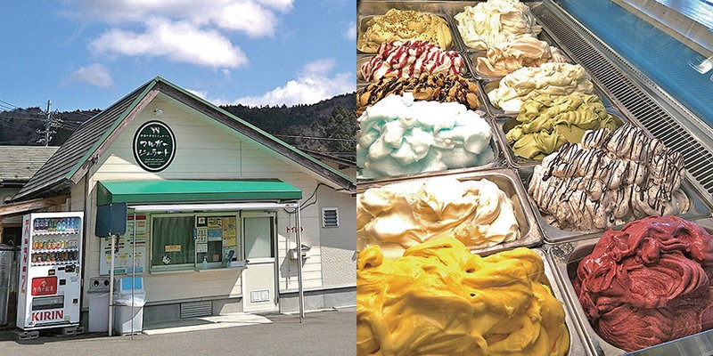 奥能登の限定牧場産の生乳で作るジェラート。旬の地物野菜や果物のアイスや世界大会で受賞したアイスが日替わりで十種類以上並びます。