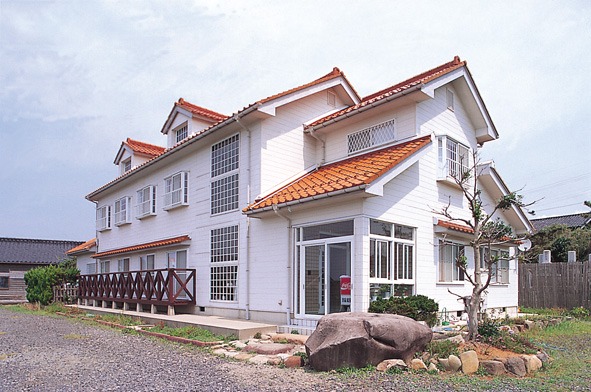 上野漁港を見下ろす高台に建つ欧風の民宿です。