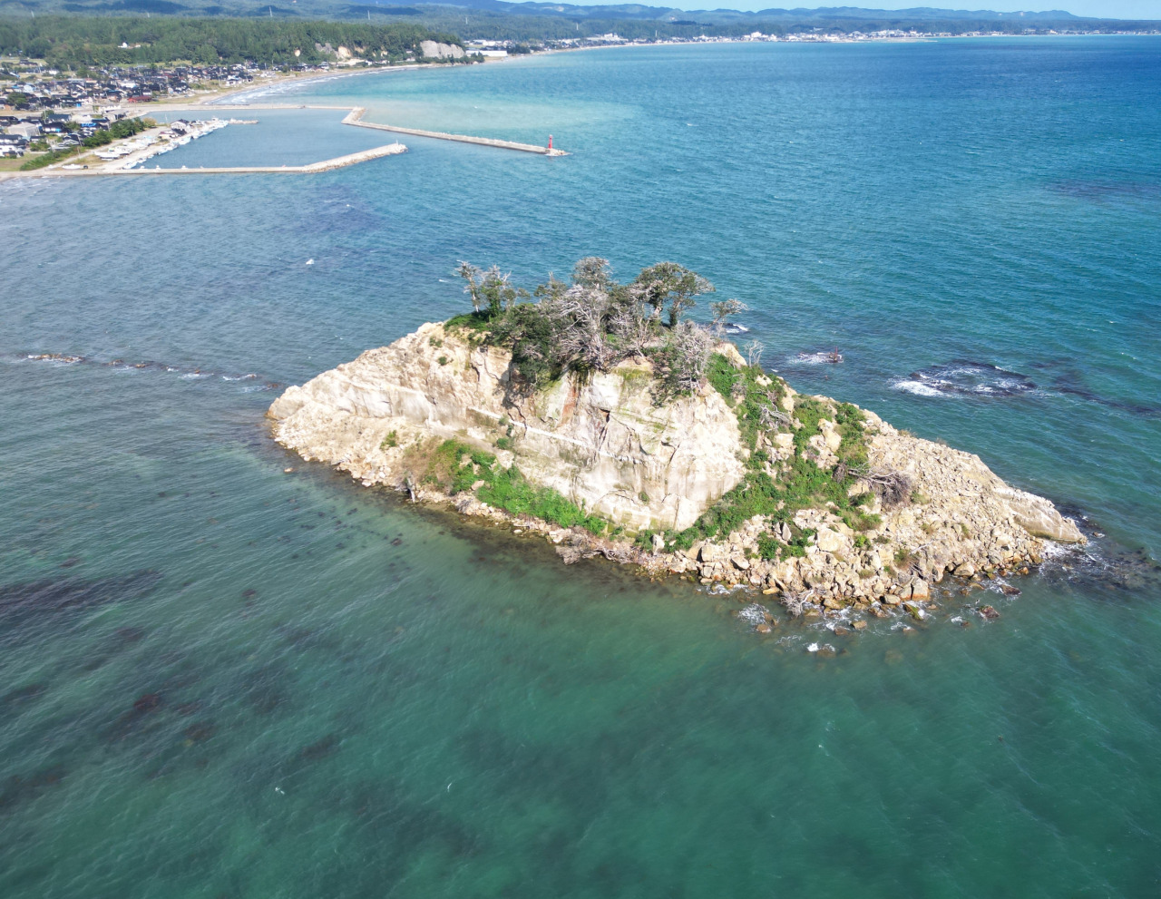 高さ28メートルの大きな岩がそびえ立ち、軍艦がこちらに向かってくるかのような迫力があった見附島。
