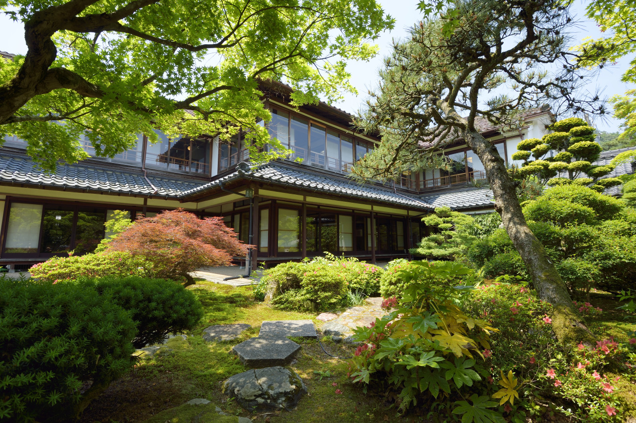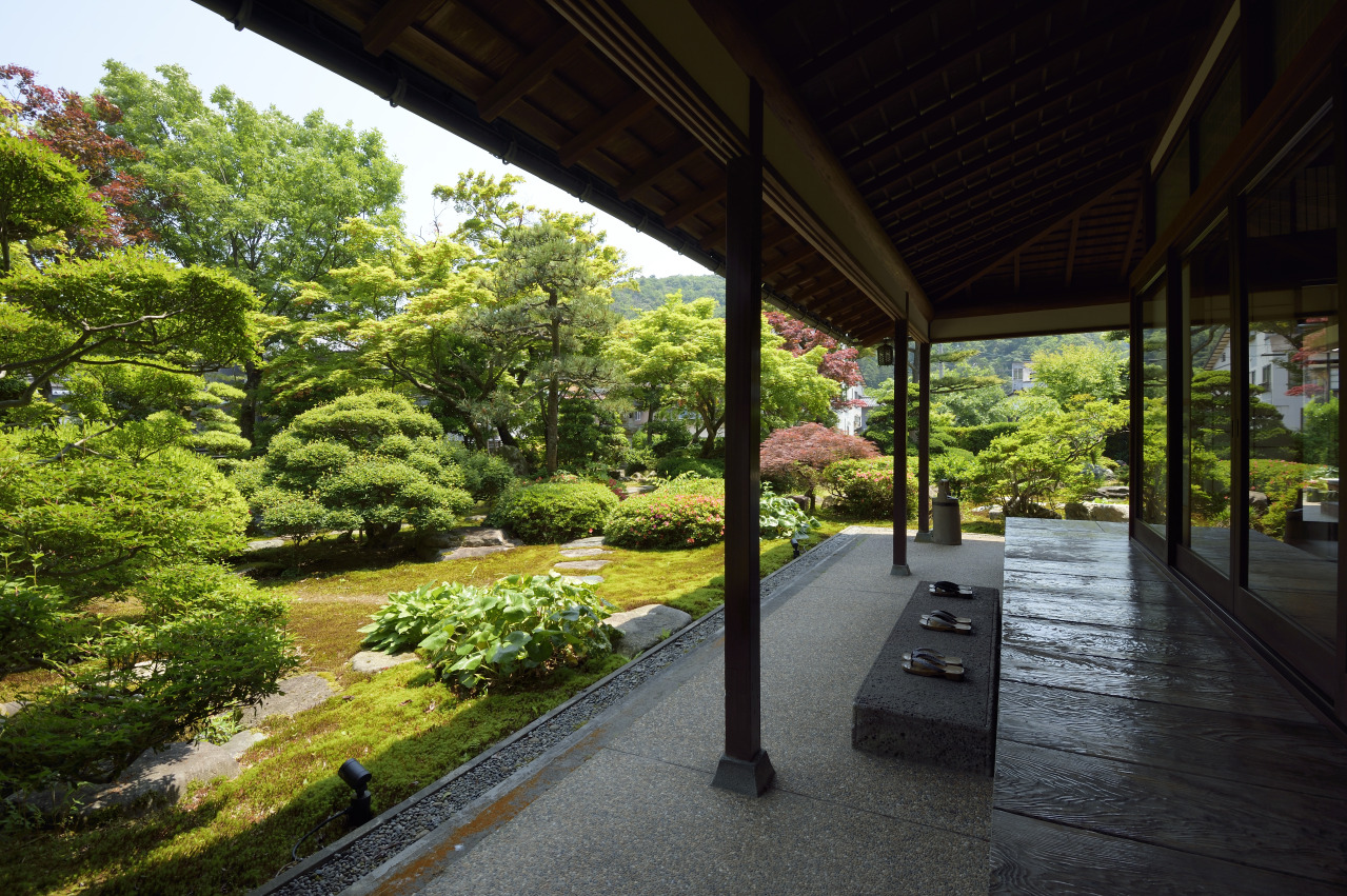 明治中期の宿屋古建築が特徴で、お茶を飲みながら美しい庭園が楽しめます。