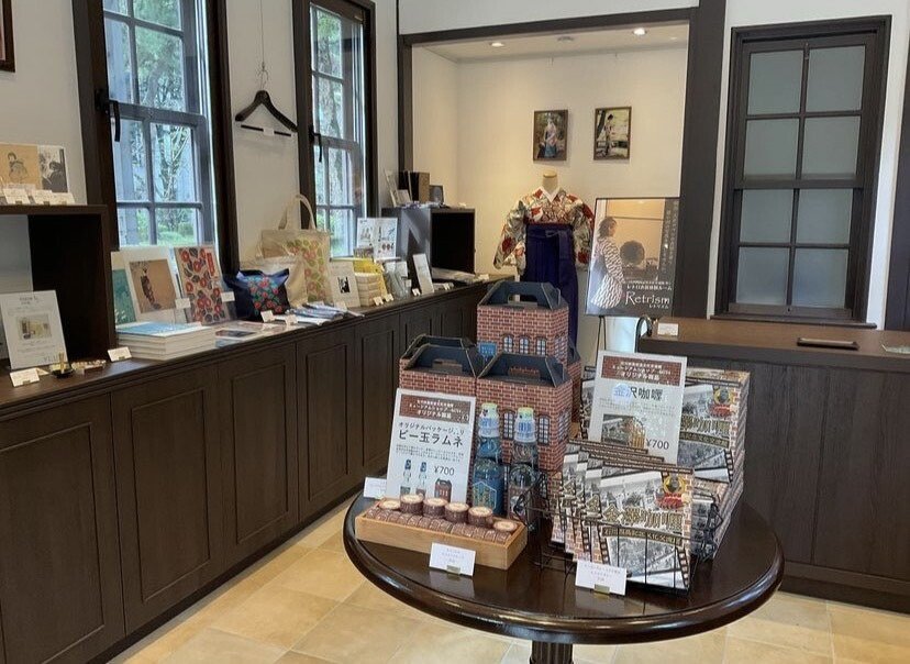 旧門衛所を改装したレトロミュージアムショップ「GATE4」では、明治・大正期の文化を感じられる限定グッズを販売。旅の思い出にぜひお立ち寄りください。
