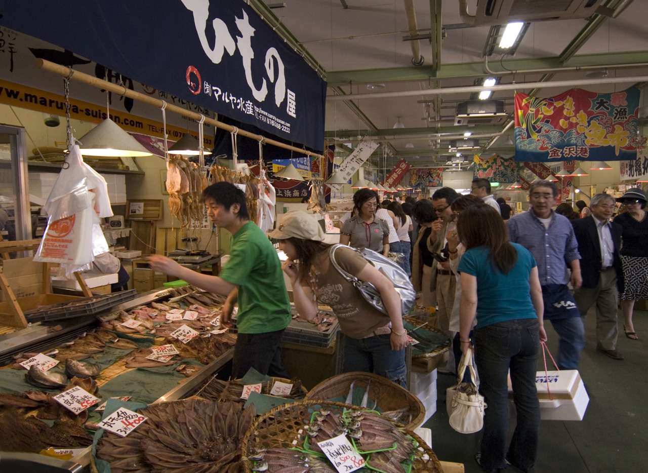 金沢市近郊の港で水揚げされた新鮮な魚介が揃う鮮魚市場。加能ガニ、香箱ガニ、ノドグロ、岩ガキ、寒ブリ、甘エビなど、厳選された地物の魚を中心に、季節ごとに旬の魚介を購入することができます。新鮮な魚を買いたい方は、朝イチに出かけることをおすすめします。地物の魚で作る一夜干しや、北陸の海鮮珍味などを販売していて、お土産に最適です。