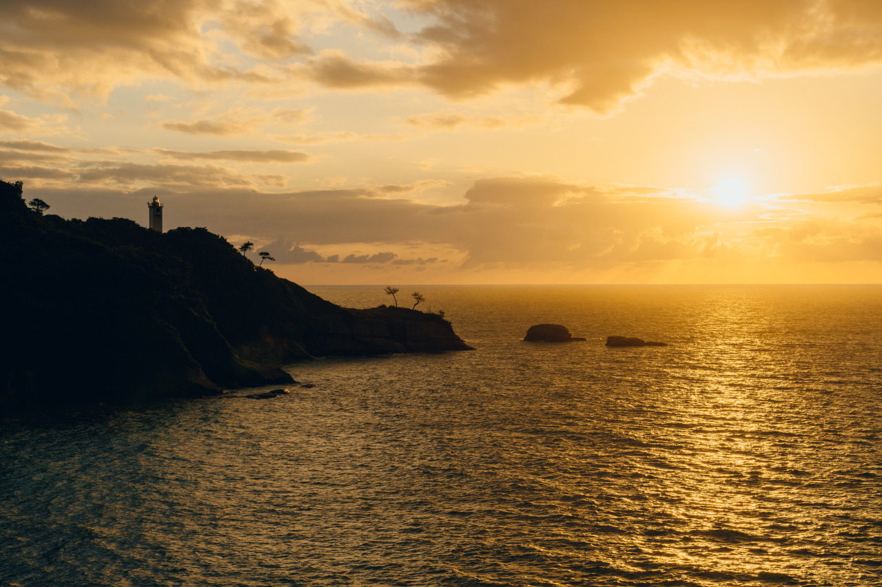 岬の先端からは左右に日本海の大パノラマ展望が開ける絶好の景勝地です。特に夕景のスポットとして知られています。