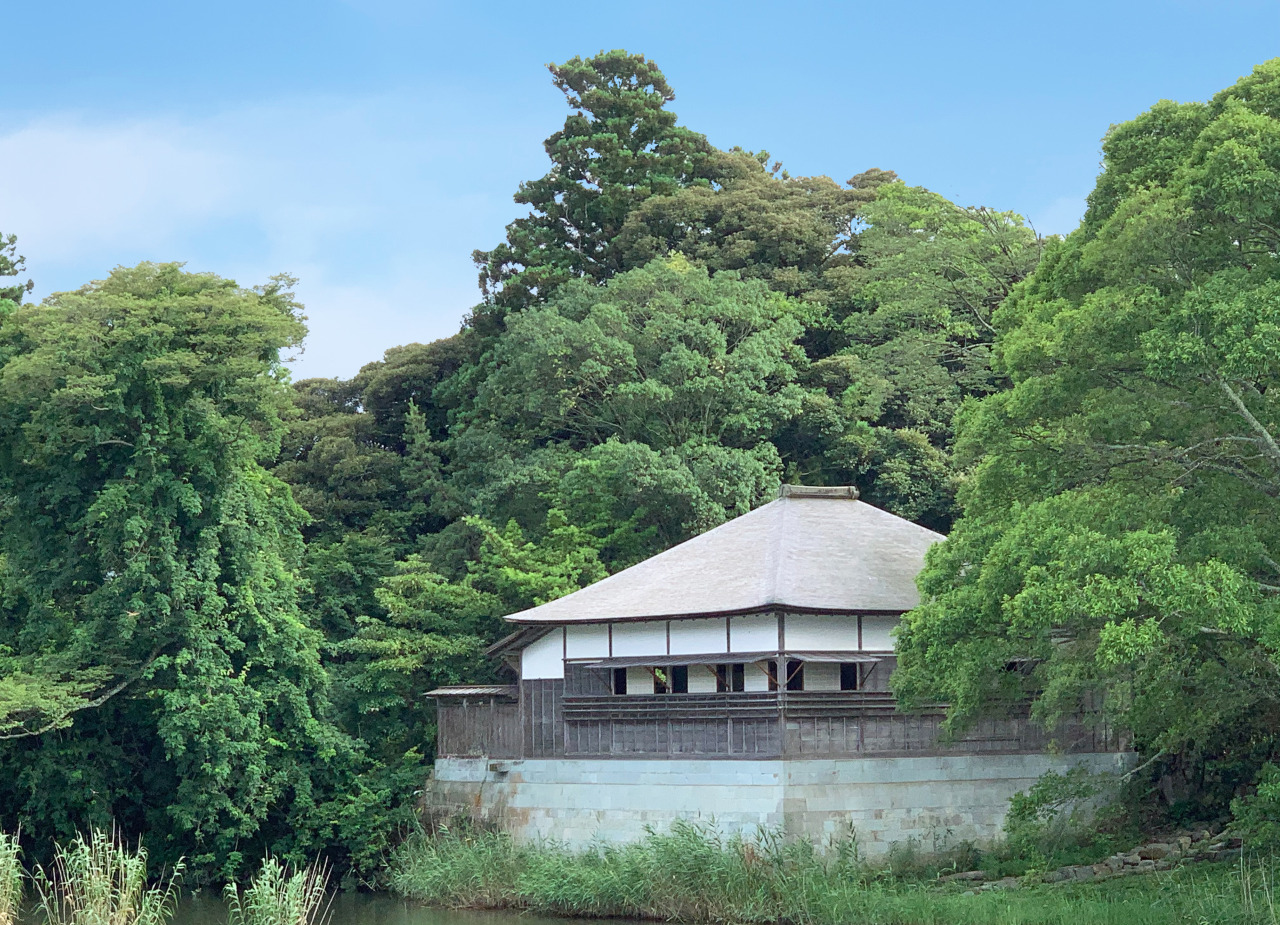 大聖寺藩主の休息所として宝永6年(1709)に上棟、藩邸の庭園の一隅に大聖寺川を臨むように建築された遠州好みといわれる亭舎です。