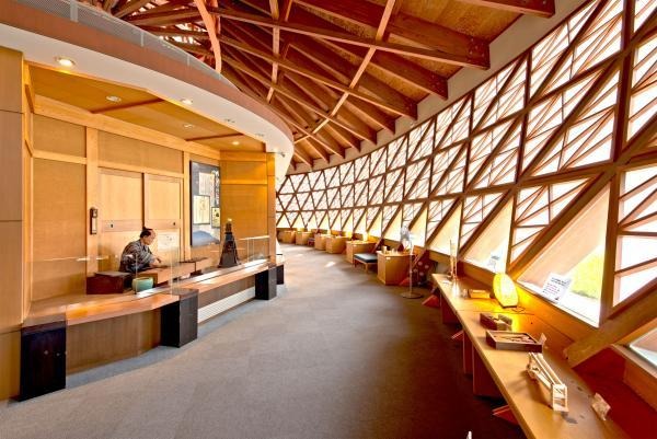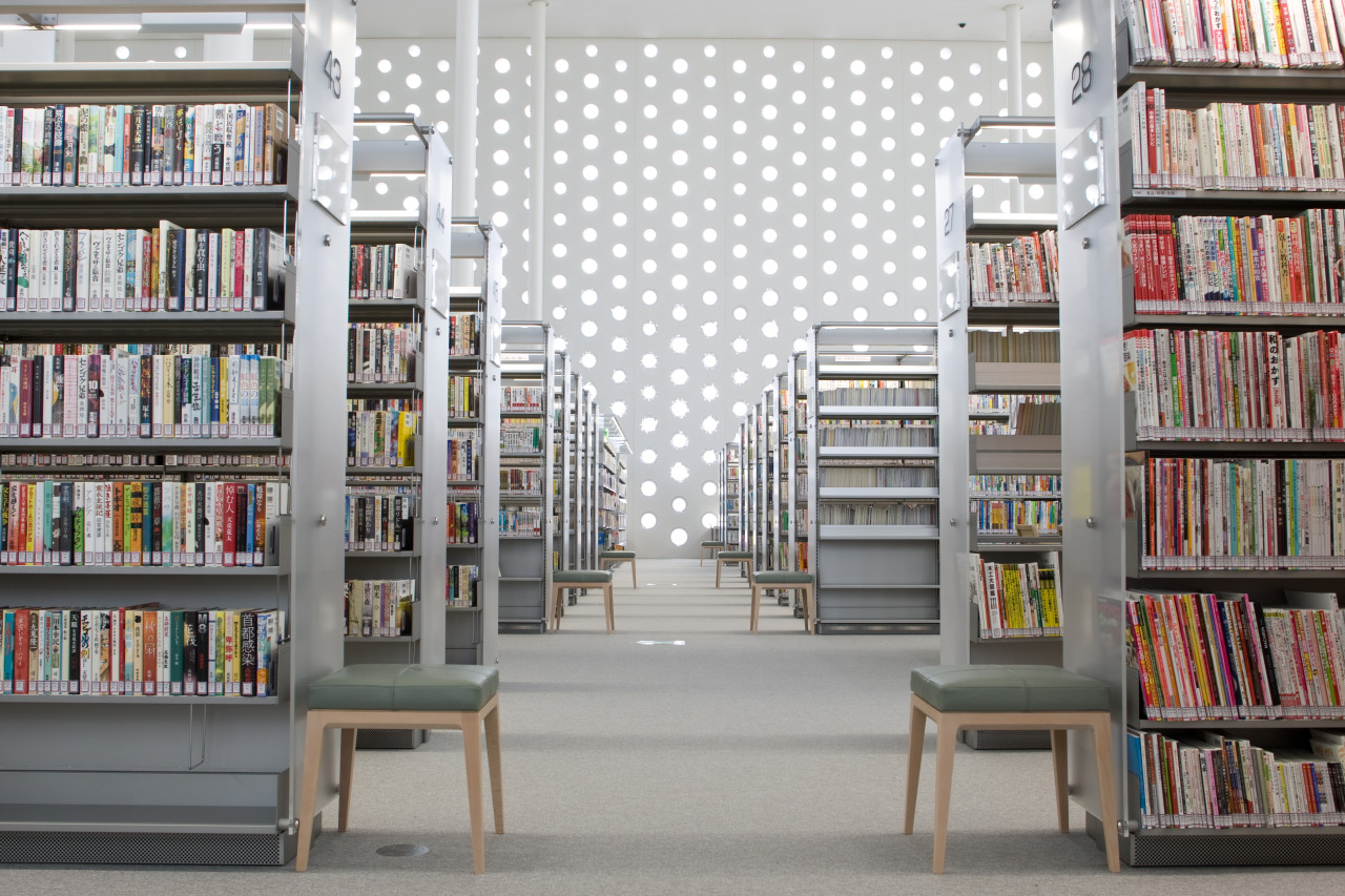 2011年に金沢市4番目の公共図書館として開館。翌年の2012年には「世界で最も美しい公共図書館25選」に選ばれました。外壁に約6,000個の丸窓を設けた斬新な建物デザインが国内外で注目されています。「柔らかな光に満たされた外のような開放感」を目指した結果、建物北側の約6割は吹き抜け空間となっており、開放感と落ち着きを兼ね備えたワンルーム型の図書館となりました。金沢市の新たな名所となっています。