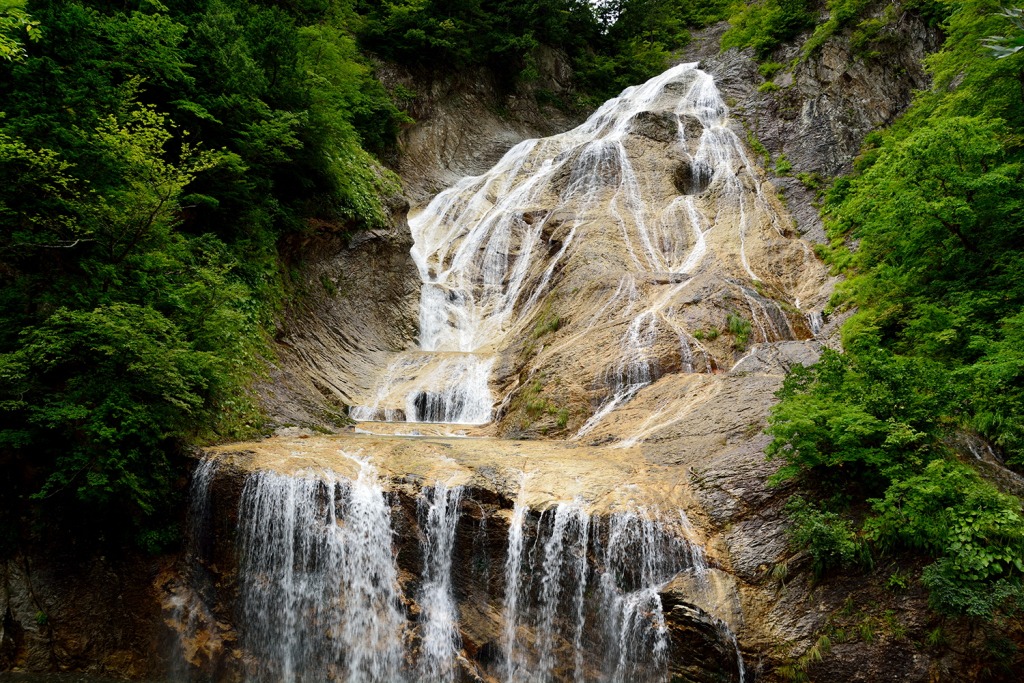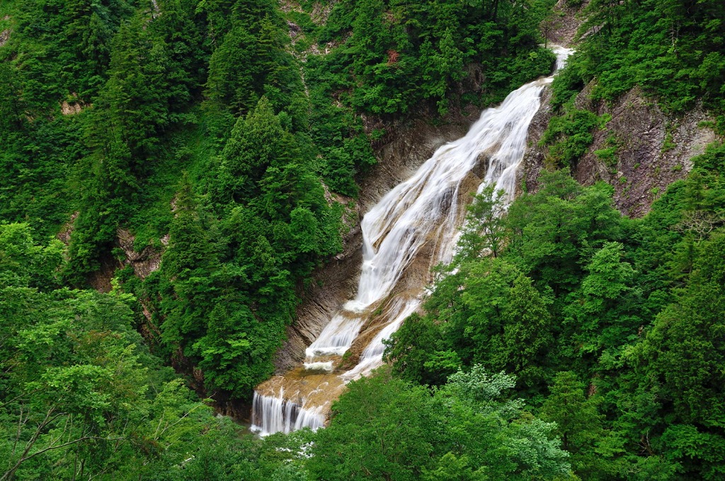 すぐそばまで行ける、手取峡谷に落ちる滝