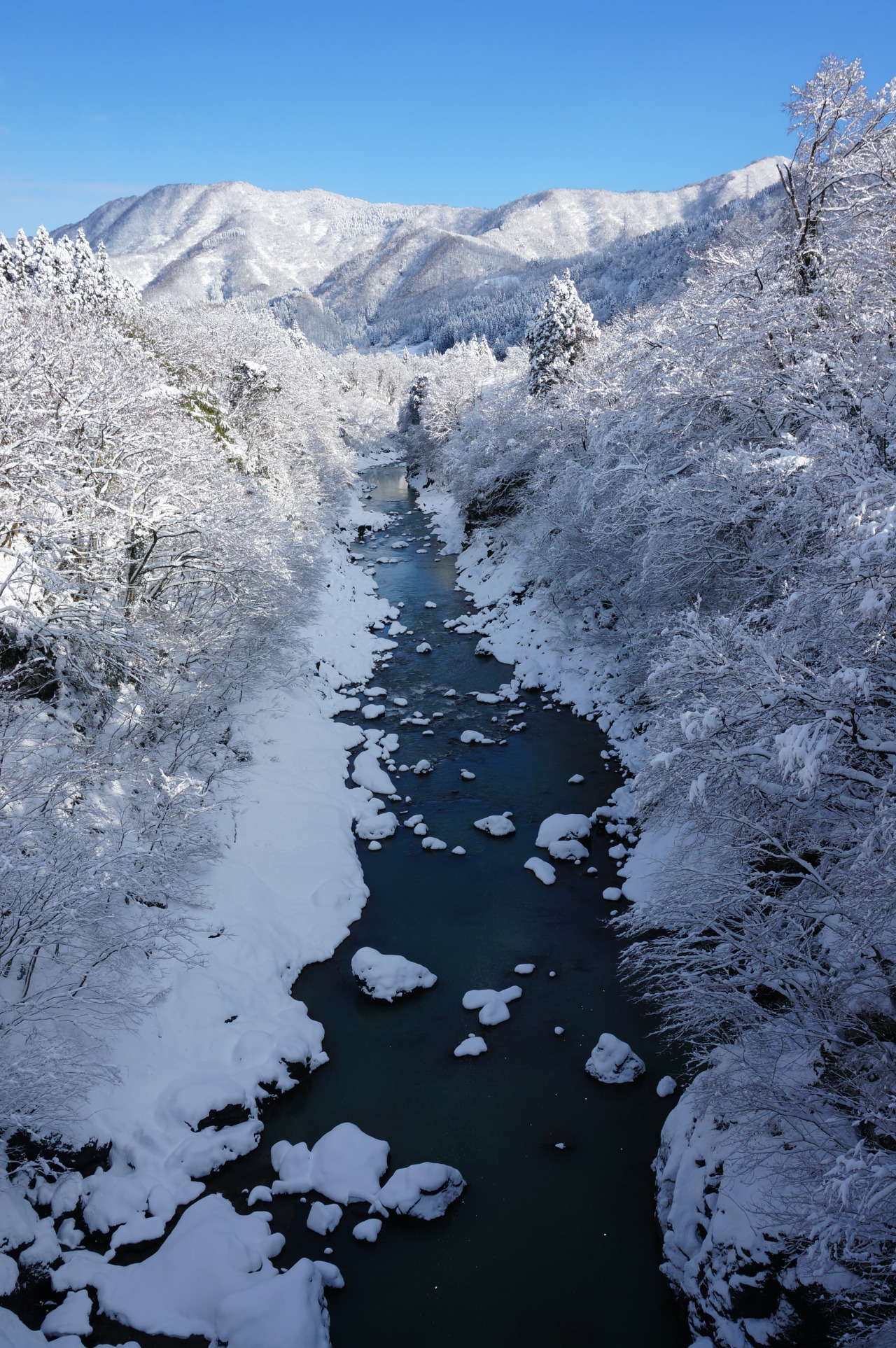 岐阜県側は世界文化遺産の白川郷合掌造りの集落へと続きます。