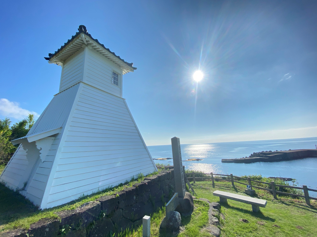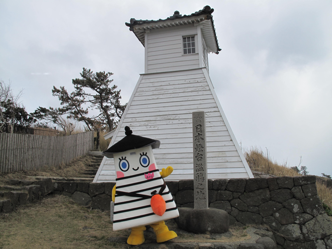 日和山と呼ばれる断崖の上にある、日本で最も古いとされる木造灯台です。1608(慶長13)年、福浦の日野資信(すけのぶ)がこの地で篝火(かがりび)をたき、夜の暗い海を航行する舟を導いたことが「灯台」の始まりといわれています。
