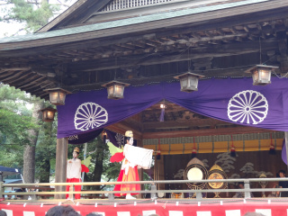 舞殿では、3日間とも氏子の少年による蝶の舞が奉納されます。