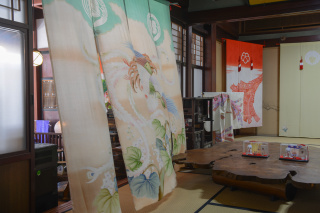 結婚式当日、嫁ぎ先の仏間にかける婚礼道具「花嫁のれん」。その花嫁のれんを商家・民家の屋内に百数十枚展示されるイベントです。