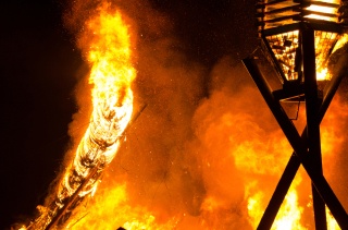川北まつりは「虫送り」と「送り火」が融合した祭りで、高さ約40mの大かがり火をバックに「手取亢龍太鼓」と「虫送り太鼓」のエネルギッシュな競演が見どころです。
