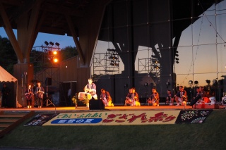 2万2千平方メートルもある柳田植物公園内の芝生広場に能登町各地区のキリコがずらりと並びます。野外ステージでイベントが開催されるほか、能登町の特産品の屋台が勢揃いします。夜にはキリコの真上に花火が打ち上がり、夏の夜空を彩ります。