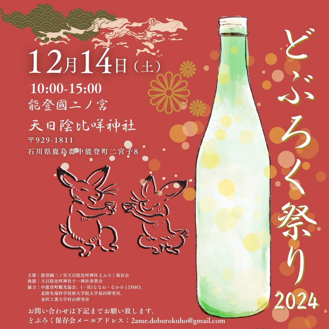 能登國二ノ宮天日陰比咩神社にて、どぶろく祭り2024を開催いたします!今年仕込んだ神社のどぶろくも振る舞わせていただきます。皆様のご参加心よりお待ちしております。