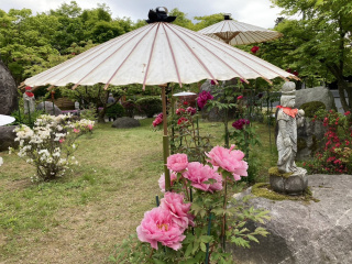 春から夏に向けて、しだれ桜、藤の花、ツツジ、牡丹・芍薬、アジサイと咲き、花の寺と呼んでいます。竹橋宿は歴史国道の倶利伽羅峠の起点であり、峠を超える旅人を見守る三十三観音の2体が安置され、加賀藩参勤交代の街道としても使われてきました。