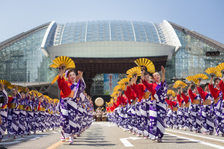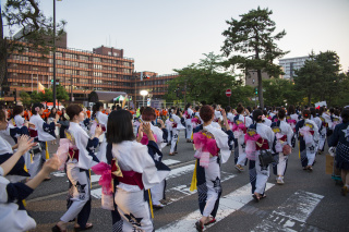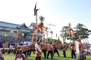 加賀藩祖前田利家が金沢城に入城したのを記念して毎年6月に開催される金沢最大のイベント。メインイベントの絢爛豪華な「百万石行列」は、日本全国および海外からも多くの人が見物に訪れます。百万石行列は金沢駅東広場の鼓門前を出発し、石川門から金沢城に入城するまで約4時間の一大パレードが繰り広げられ、毎年、有名俳優が前田利家公に扮して沿道の人たちを盛り上げます。文化財に指定されている加賀獅子の行列、ハッピ姿が勇ましい加賀とび行列、勇壮な武者行列など、多彩な行列が次々と披露されとても見応えがあります。
