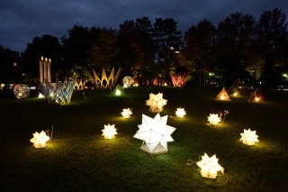 あかりのオブジェが空間を幻想的に彩ります。会場内では、プロジェクションマッピングや小さなあかり制作のワークショップなどを開催予定。リアルとバーチャル会場をつなぐ共有体験やARカメラアプリ、インタラクティブCGアニメーションなどメディアテクノロジーを使った新たな月見光路をお楽しみください。