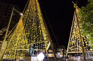 近江町市場周辺では、冬の期間、金沢の冬の風物詩である雪吊りに金箔をあしらったモニュメント「金箔きらら」 が登場します。